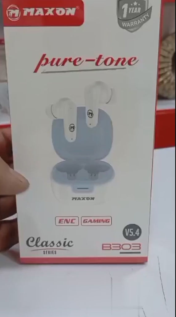 Level up your audio game with the Maxon B303 Pure-tone ENC Gaming Earpods – the ultimate wireless earbuds for gamers and music lovers alike!